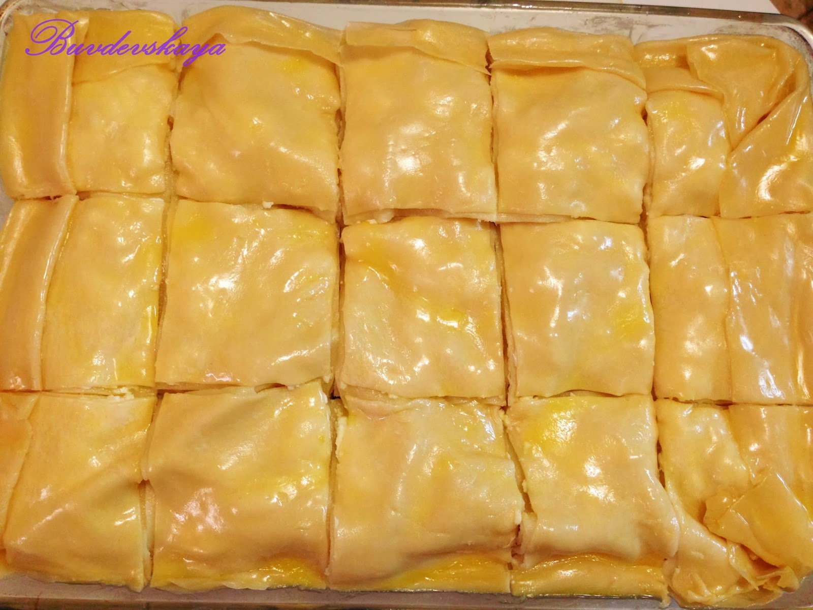 12. Разрезать Ачму на равные квадраты и сверху полить оставшимся маслом. Поставить в духовку разогретую до 180 градусов на 30-40 минут до образования золотистой корочки. Вынуть из духовки, дать совсем немного остыть и подавать на стол. ENJOY!