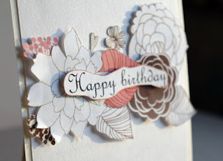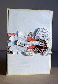 Это открытка-карточка, она не раскладывается. Основа из текстурированного кардстока очень нежного цвета - экрю. Цветы - распечатка на лазерном принтере. Как и надпись. Всё для объема приклеено на вспененный скотч.