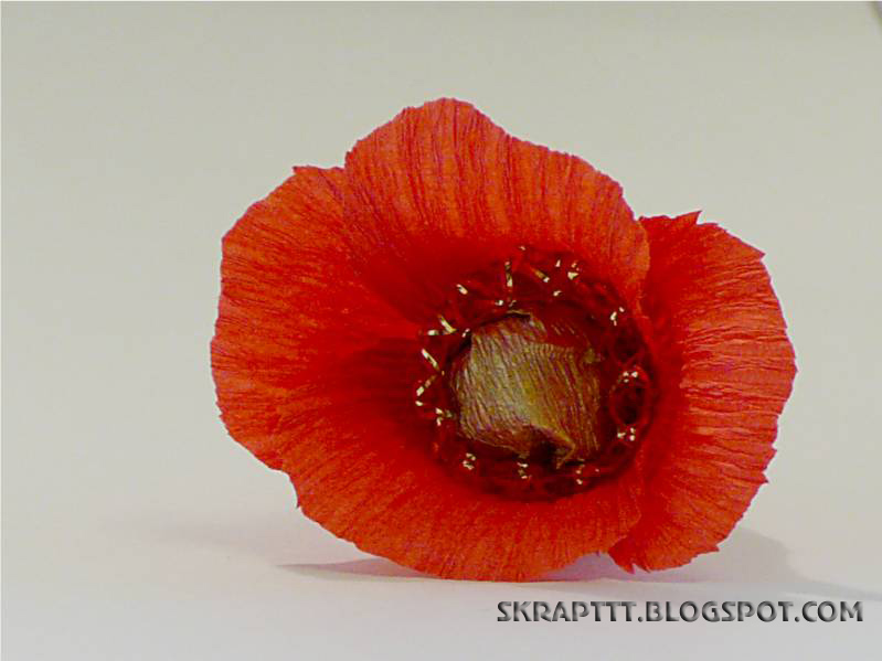 2. Полоску из цветной флористической бумаги перегнем в 4 сложения и вырежем 4 лепестка со скругленным верхним краем и скошенным на угол нижним