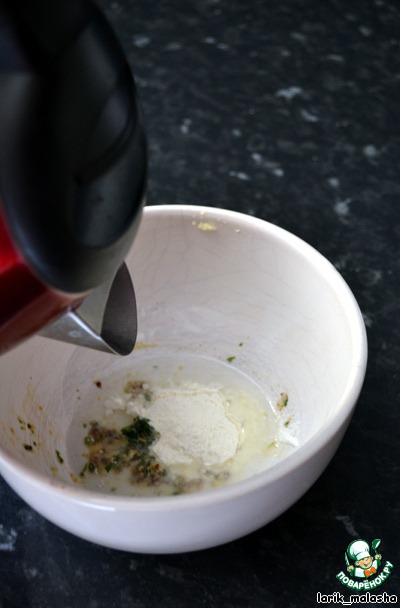 Посолить, поперчить, добавить нарезанную петрушку. Хорошо перемешать. Если маринад густоват, то разбавьте немного водой. |