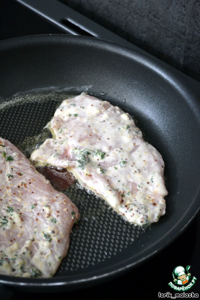 Обмакнуть грудки в кляре и жарить в раскаленной сковороде до золотистого цвета - около 2 минут с каждой стороны. |