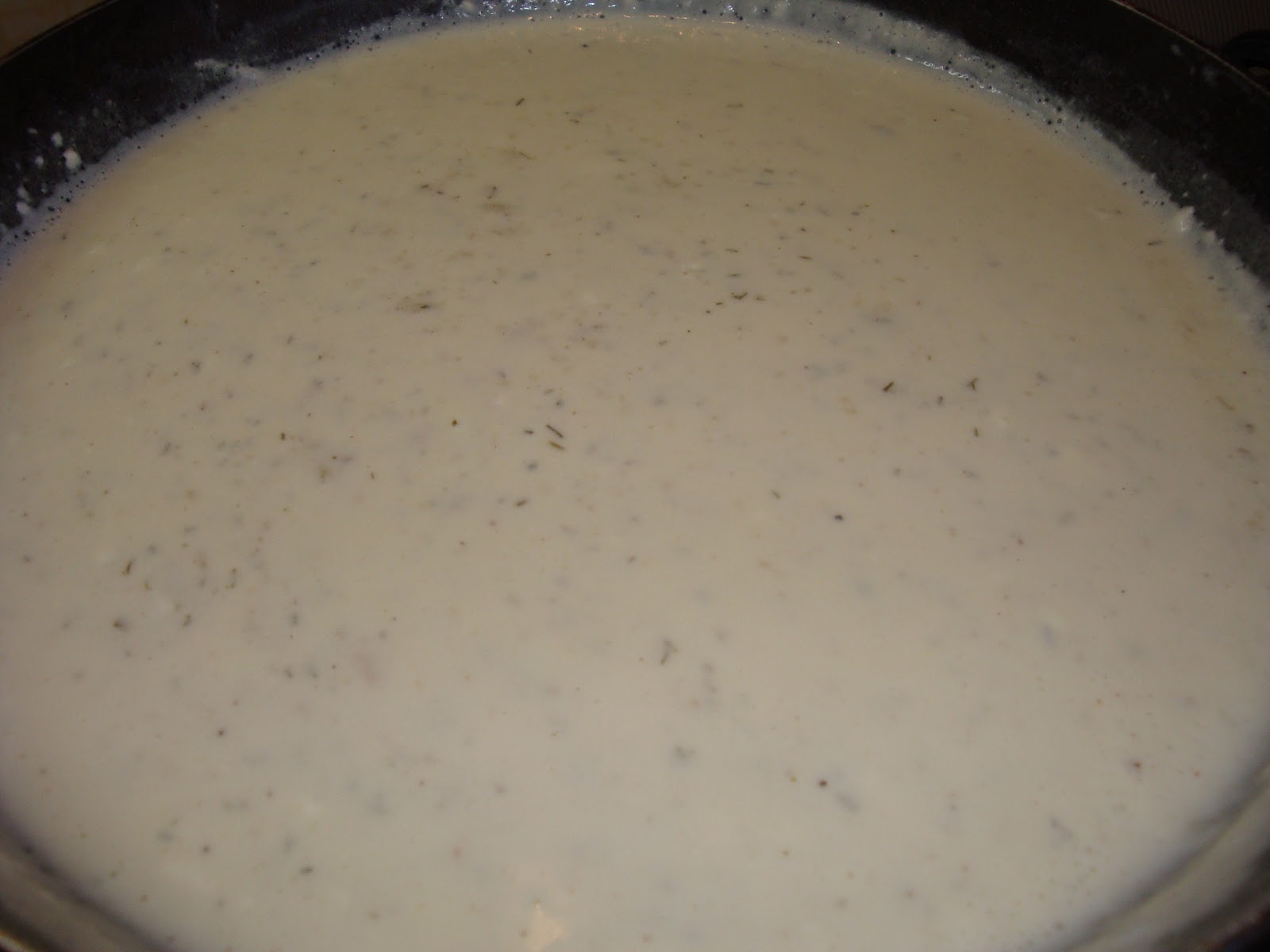 Муку подсушить в предварительно разогретом слив.масле. Помешивая, влить молоко. Добавить плавленный сыр с травами. Когда он расплавится, смесь посолить, поперчить и приправит по вкусу мускатным орехом.