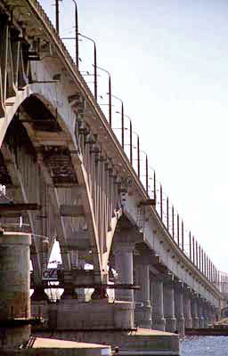 Саратовский автомобильный мост соединяет берега Волги в том месте, где с одной стороны расположился Саратов, а с другой – город Энгельс.