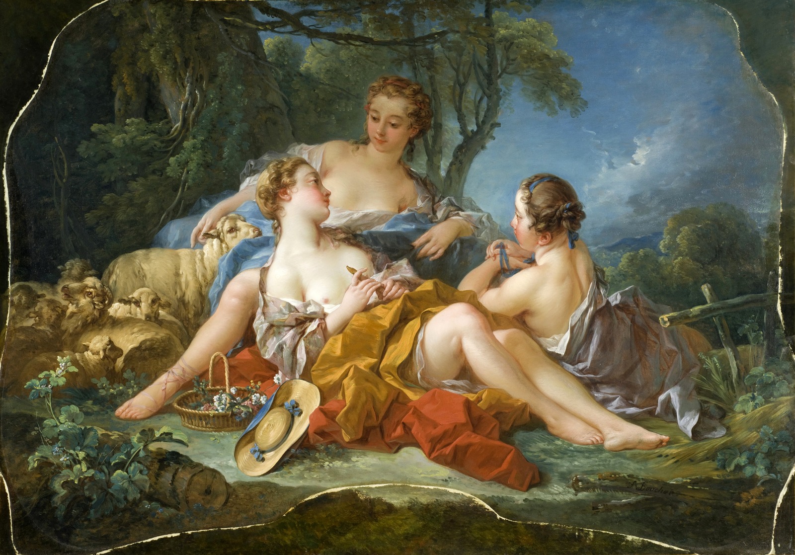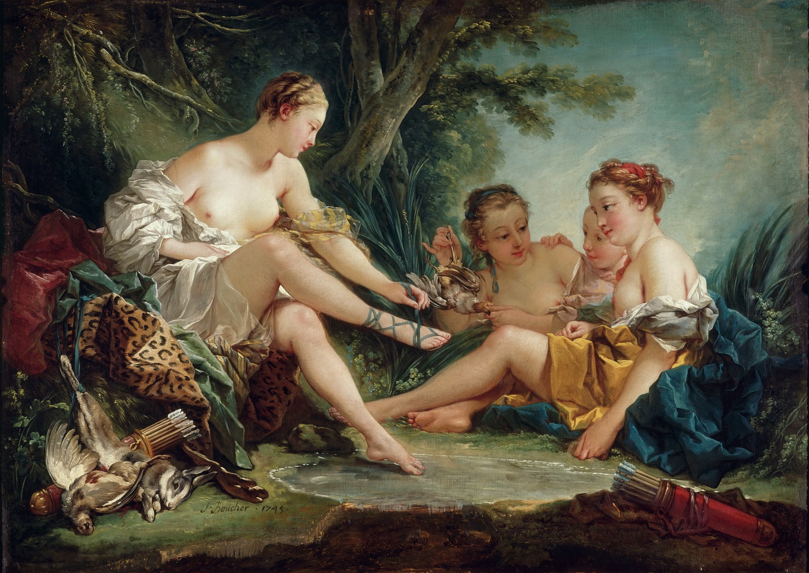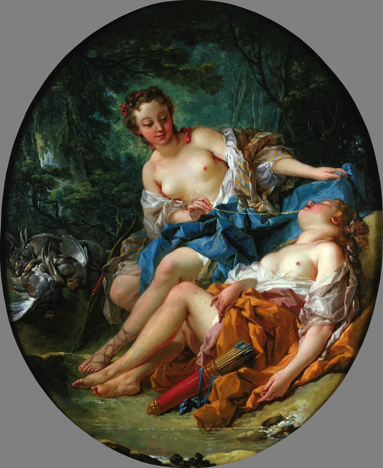 Диана после охоты (Diana after the Hunt)_37 х 52_х.,м._Париж, Музей Коньяк-Жэ 1745_Диана с нимфой после охоты (Companions of Diana)_117 х 92_х.,м._Сан-Франциско, Музей изобразительных искусств