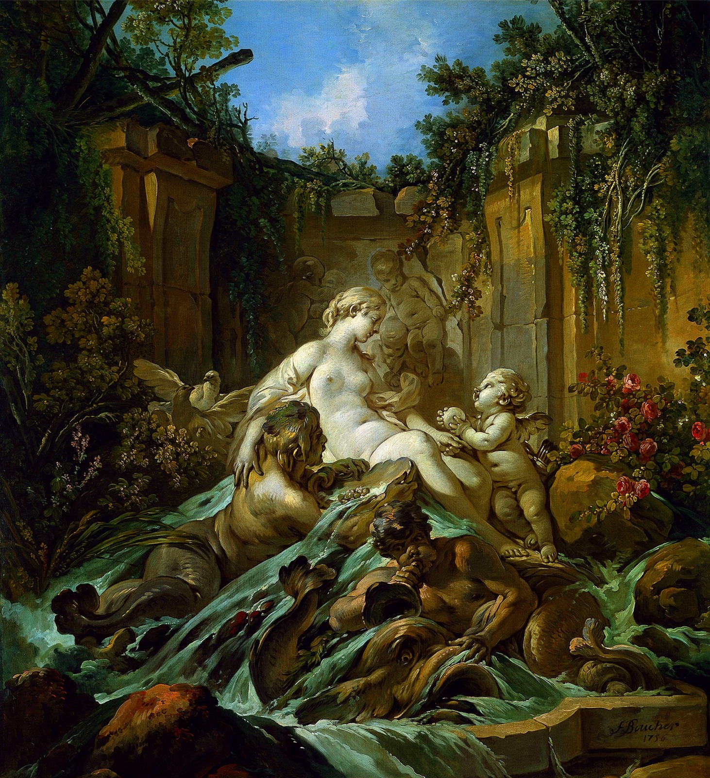 1751_Белокурая одалиска (Портрет мадмуазель Луизы О'Мерфи (The Blonde Odalisque, also known as Portrait of Marie-Louise O'Murphy)_59.5 х 73.5_х.,м._Кёльн, Вальрафа-Рихарца 1753_Аллегория лирической поэзии (Allegory of Lyric Poetry)_114.9 х 159.4_х.,м._Нью-Йорк, Музей Метрополитен