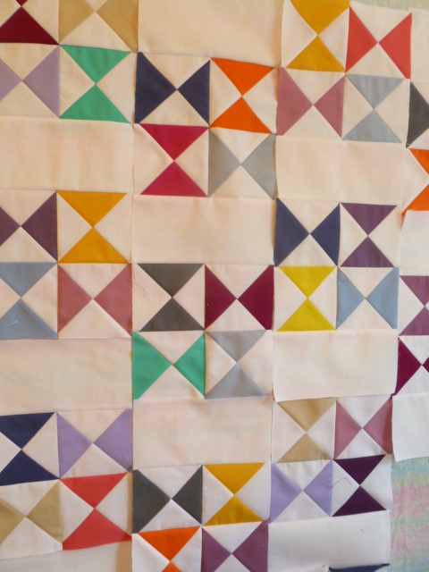 Это очень важно. Перед тем, как стежок ваши блоки вместе, убедитесь, что они все идут так, как должно!Здесь я рекомендую использовать конструкцию стены (или на полу), и принимая фотографию, прежде чем шитья. Когда я вижу его на фотографии, это легче увидеть, если цвета сбалансированы, или, если у меня есть какие-либо блоки оказались в неправильном направлении.