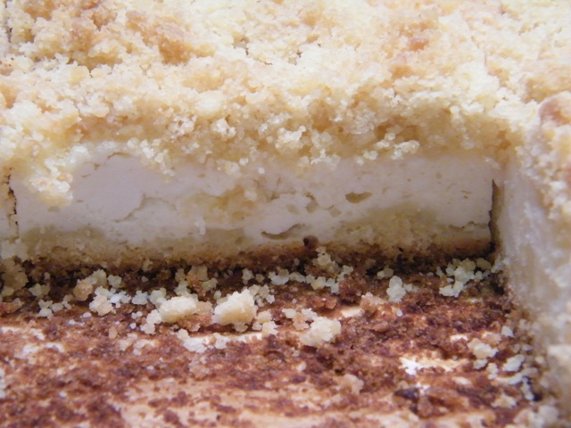 Творог, яйца и 12 столовых ложек сахара смешать и поставить массу в холодильник.
