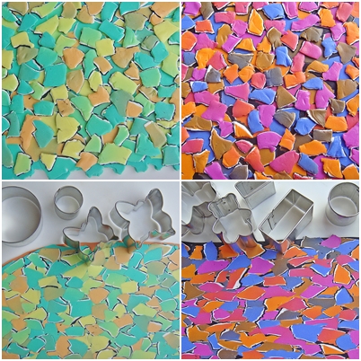 Кусочки мозаики, так же можно наложить на круглые заготовки и ладонями скатать бусины (здесь перчатки обязательны!)