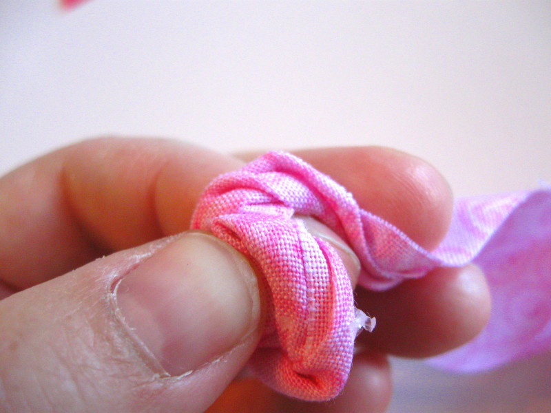 Я начинаю, сворачивая конец ткани в два раза.