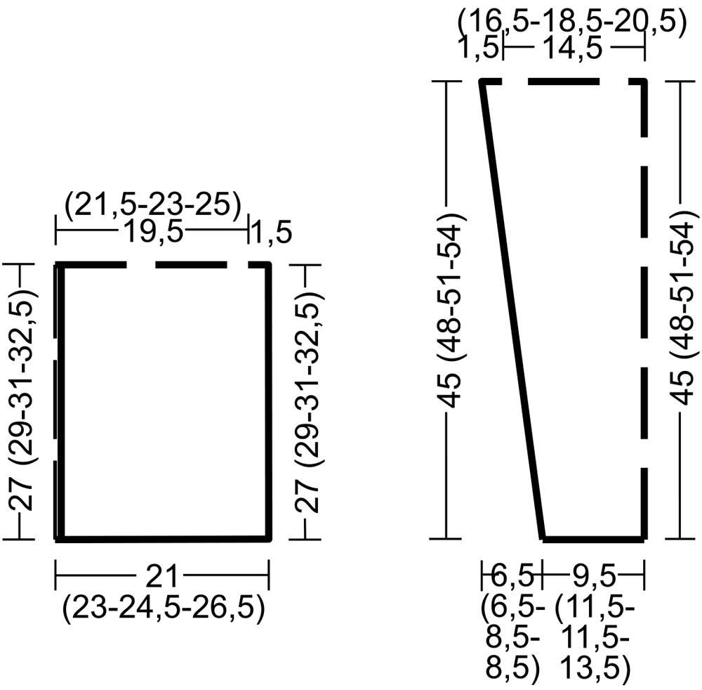 Для скосов прибавить с обеих сторон в 11 (11-9-9-м) р. от наборного ряда 1 раз по 1 п., в каждом 8-м р. 16 раз (в каждом 10-м р. 5 раз и в каждом 8-м р. 11 раз — в каждом 8-м р. 13 раз и в каждом 6-м р. 8 раз — в каждом 8-м р. 18 раз и в каждом 6-м р. 3 раза) по 1 п. = 87 (97-107-119) п.