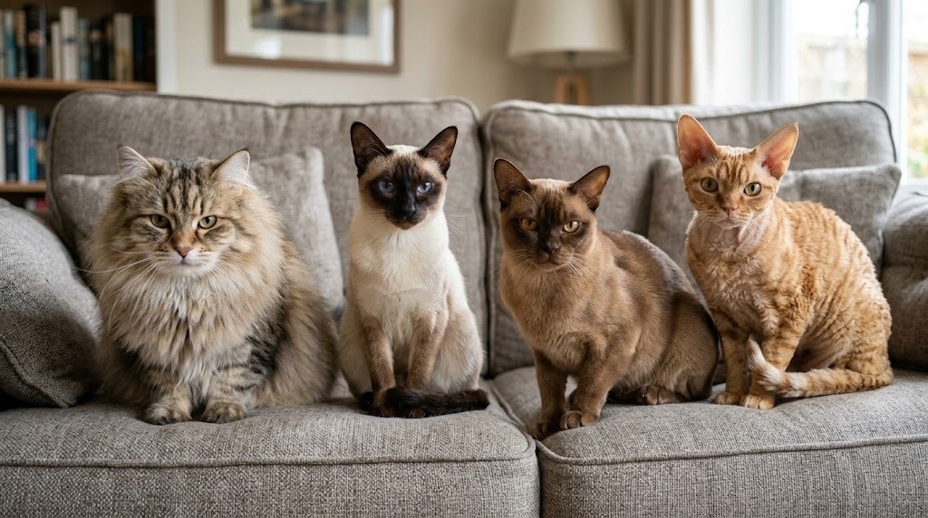Отдельно упомяну сиамскую породу. Сиамцы часто попадают в списки условно гипоаллергенных кошек: короткая шерсть без подшёрстка, умеренная выработка белка. Но индивидуальный разброс у них большой, поэтому необходимо тестировать реакцию на конкретного кота.