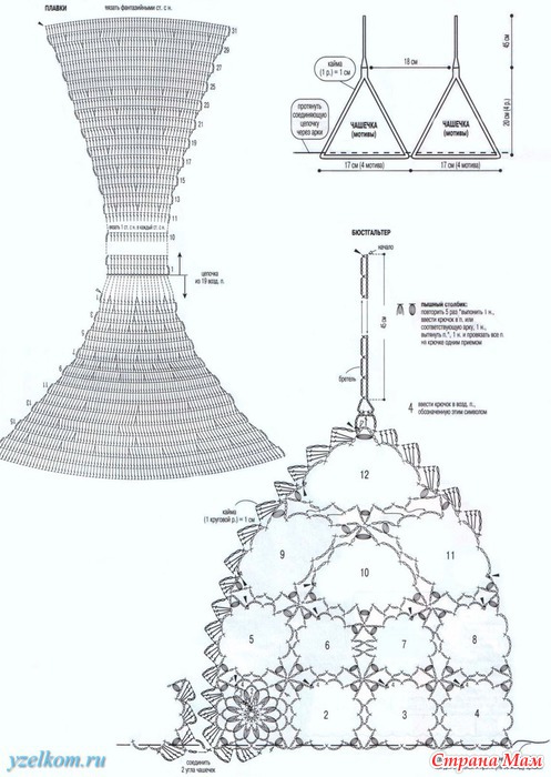 Для задней части плавок выполнить то же самое: в 18-м ряду = 93 ст. с/н. Мотивы вязать и соединять как для лифа (1 полоску из 13 мотивов соединить в круг).