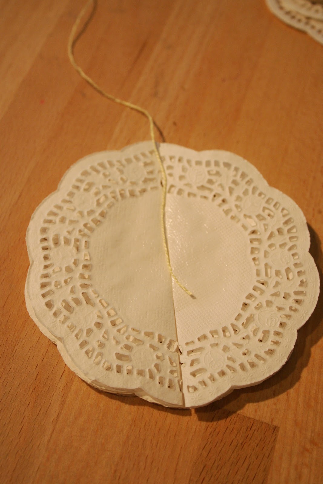 Две крайности, оставшегося свободного бумаги клеем сторону , и вставки нить в одном из них (можно будет повесить украшения):