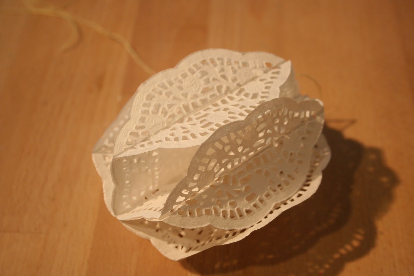 и приклеиваем ажурные стороны вместе , получается красивый нежный фонарик