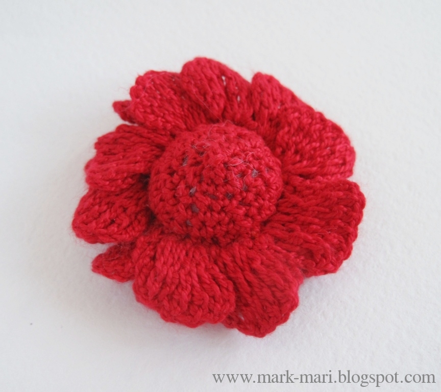 Четвертый ряд круга-основы обвязывается двумя рядами красных лепестков - за переднюю и за заднюю стенки.