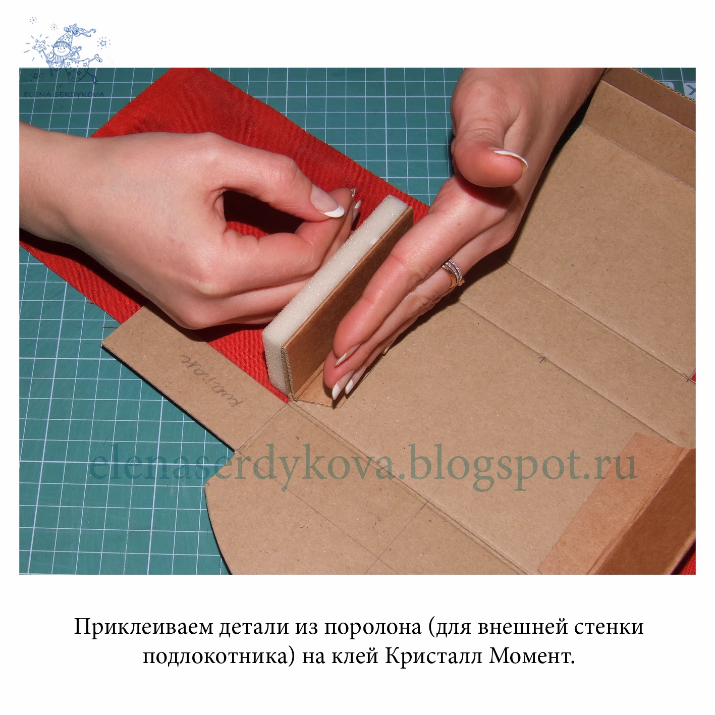 Если поролона под рукой нет и не предвидится, то можно заменить его синтепоном, сложенным в 4-5 слоев, и подлокотник выкраивать одной деталью) Формы получатся более округлыми -