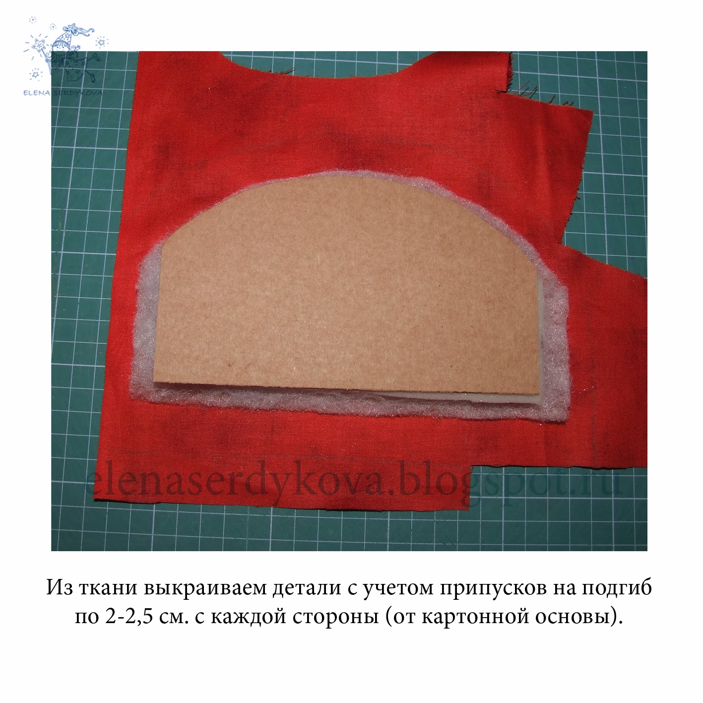 не забудьте подложить между картоном и тканью синтепон - мне пришлось переделывать))