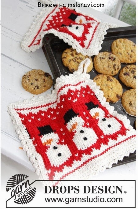 Маринка12 Оригинальное сообщениеВязание на спицах: Прихватки с новогодним рисунком