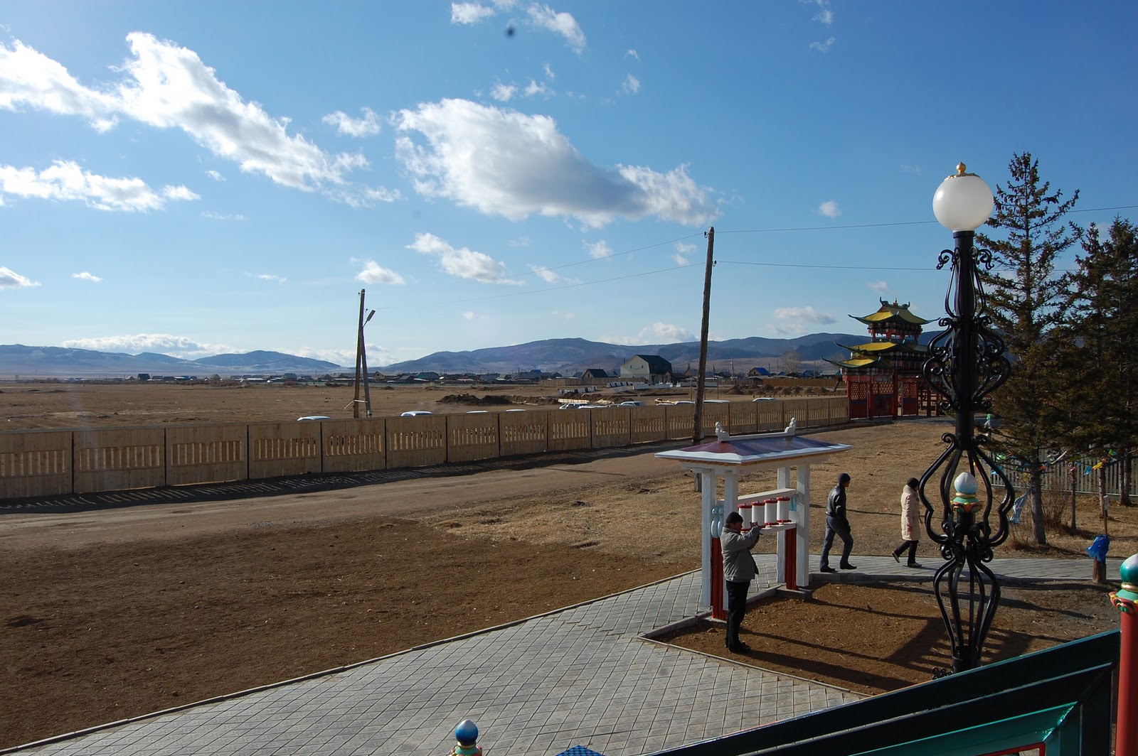 Вокруг дацана горная долина без единого деревца с серой мерзлой землей. Неуютно.