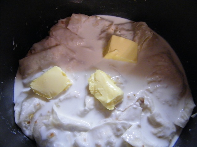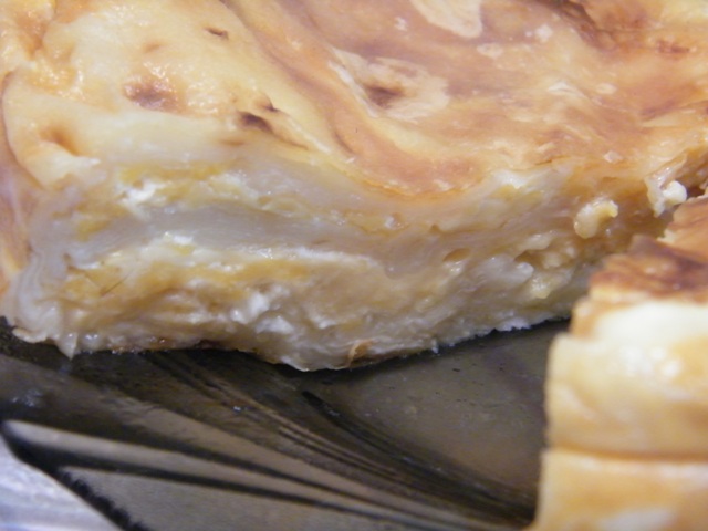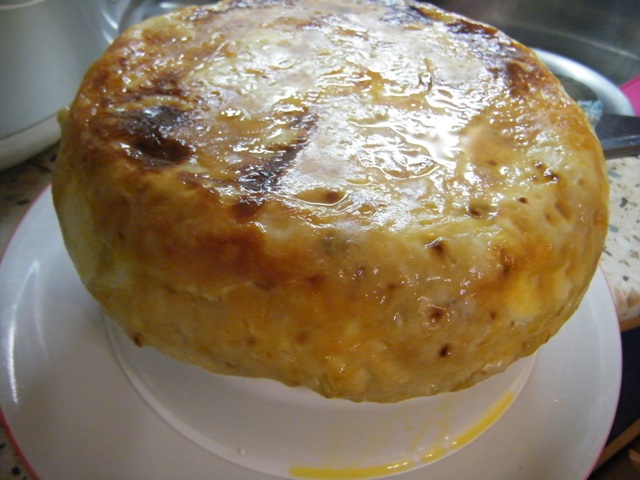 Приподнятые края загнуть-закрыть все безобразие, сверху вылить остатки кефира и положить кусочек сливочного масла. Выпечка 40 мин.