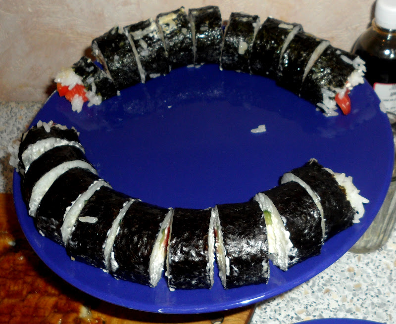 Но НЕ стоит заменять Фетаксой, тк ролы получатся Очень соленые,а если учесть,что мы их еще будем макать в соевый соус, то ваши почки не скажут вам спасибо!)