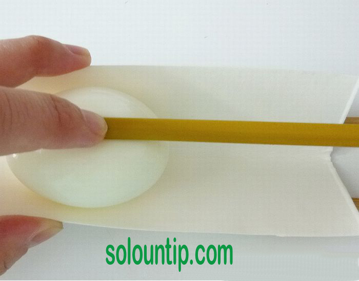2) Поместить свареное вкрутую яйцо (очищенное),и поставить круглую деревянную палку.