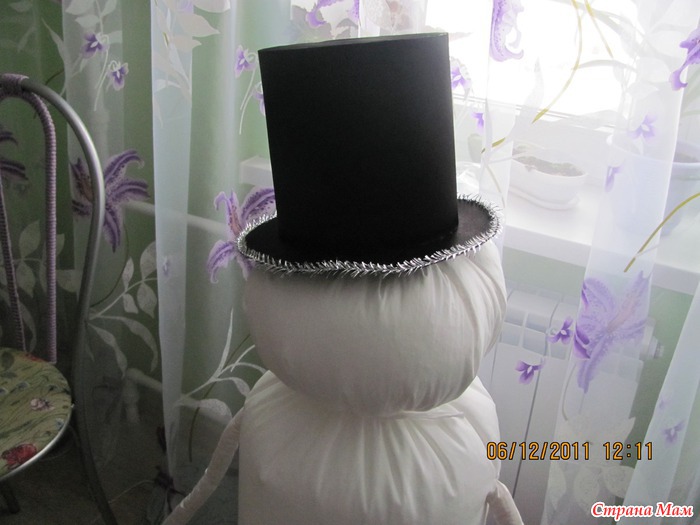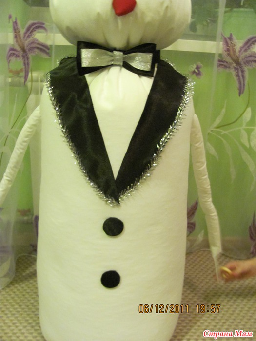 Осталось только сделать снеговика нарядным. Решила сделать джентльмена.