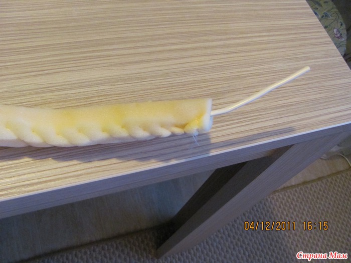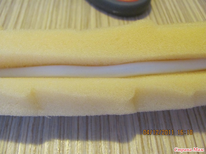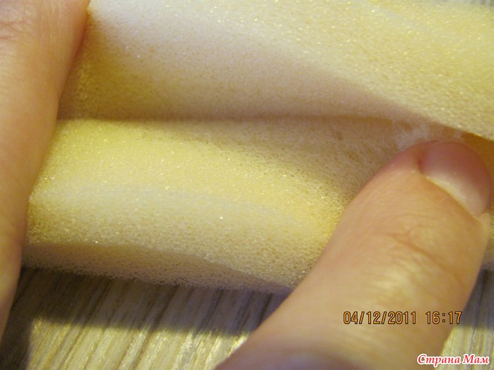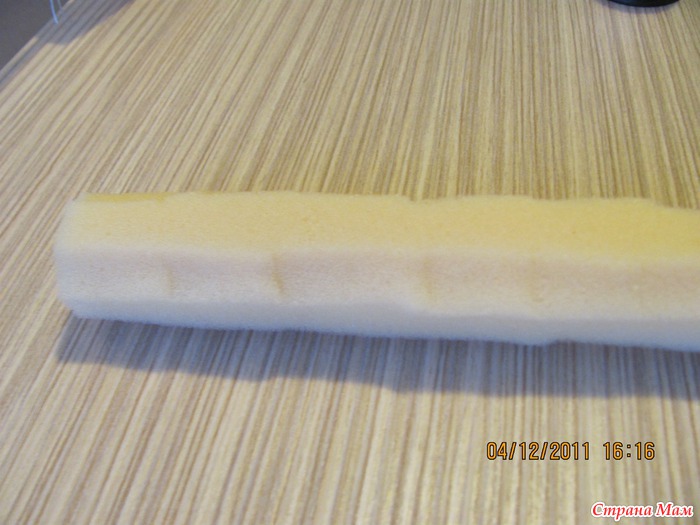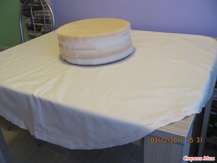 Получился этакий "торт" - снизу картон плотный, затем 4 слоя поролона в 3см. Всё склеила между собой.