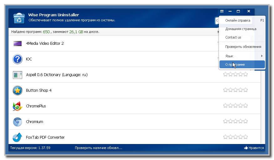 Деинсталляция программ с помощью Wise Program Uninstaller.