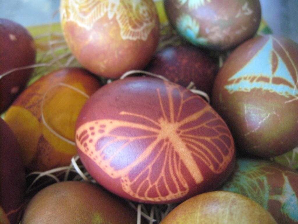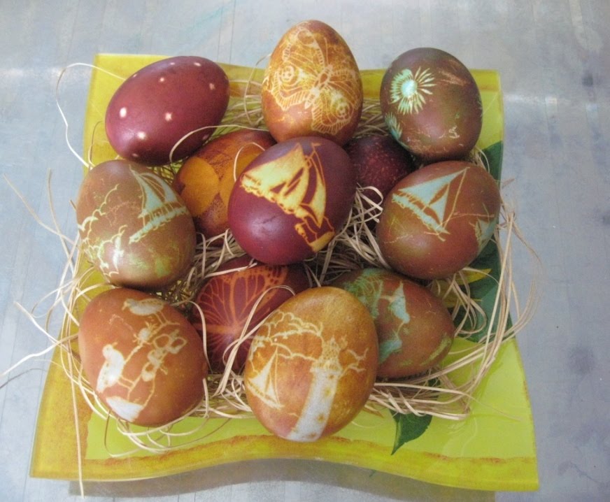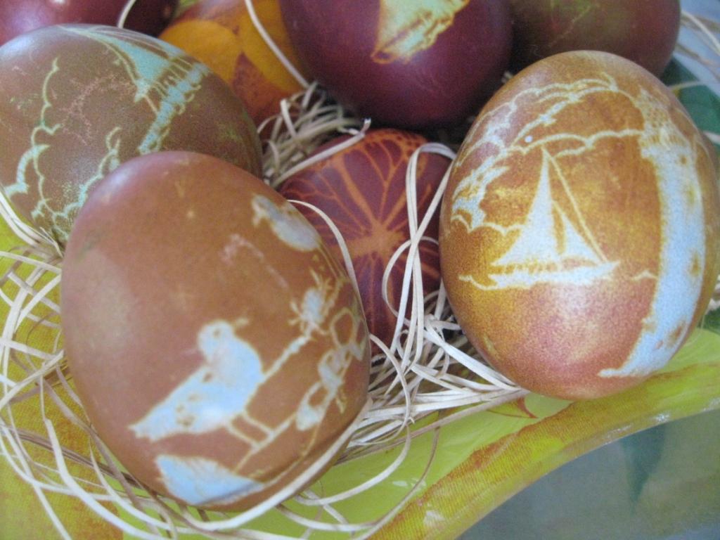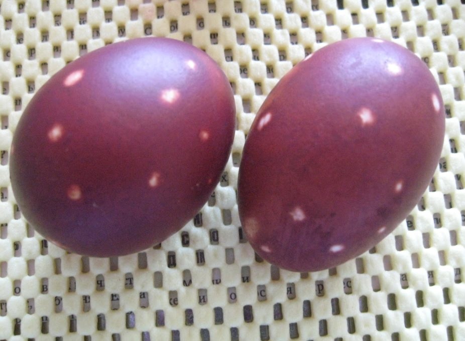 За этот период, пока я красила другие яйца, мои супер-чудо яйки тоже успели накраситься. Достаём :)