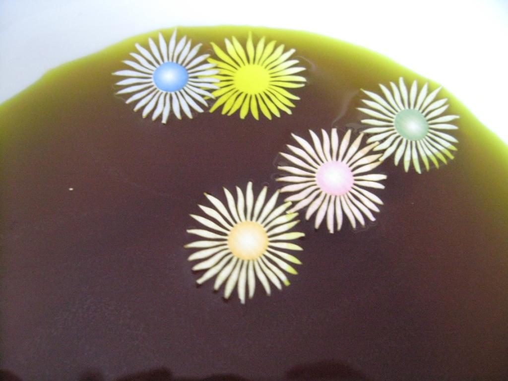 А это результат от манки. Тоже на любителя. Просто манку труднее всего распределить под капроном, поэтому получается немного сумбурно, но тоже прикольно. Таким же образом я пробовала и с рисом. Получается примерно так же, только вместо кружочков такие продолговатые штучки остаются :)