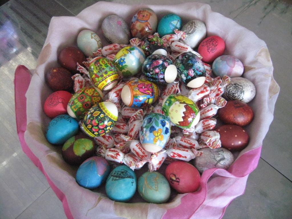 Ну а эту корзину я приготовила для "утренних гостей", которые завтра будут толпами ходить и на весь подъезд кричать...... ХРИСТОС ВОСКРЕС !!!!!!!
