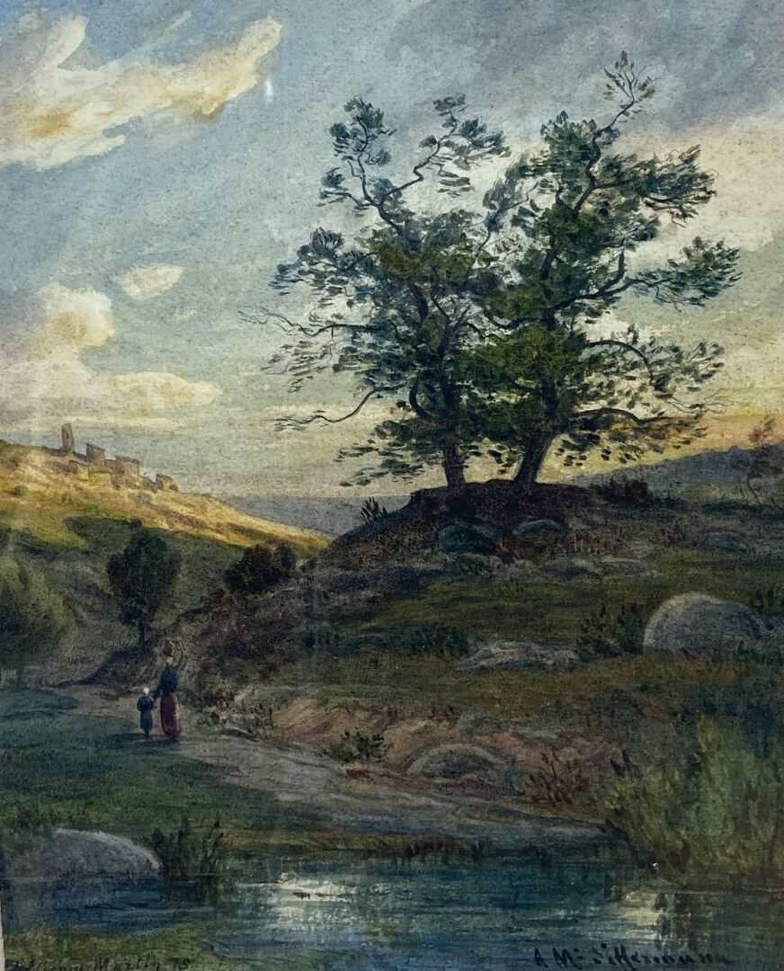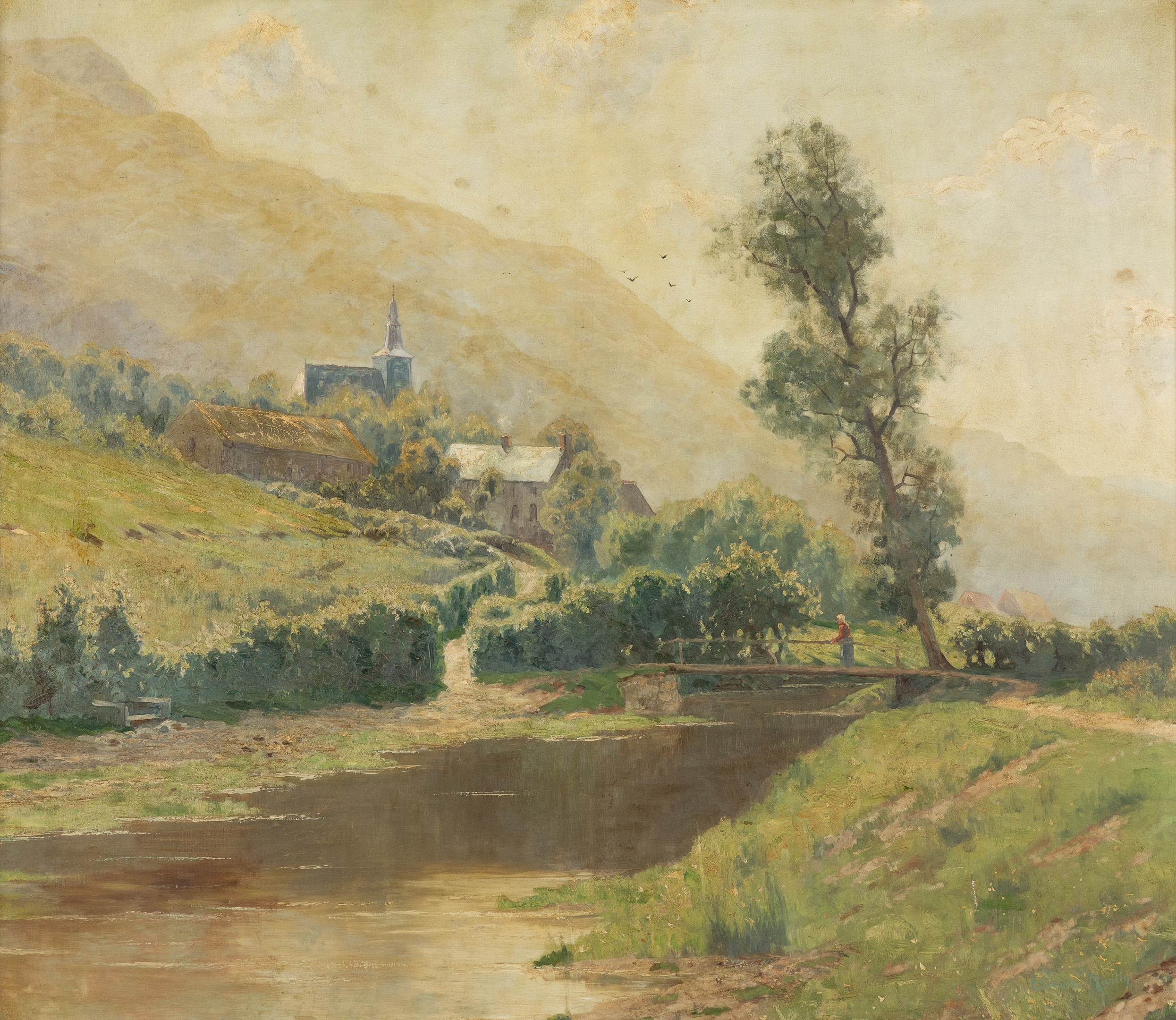 Пейзаж с мостом через реку