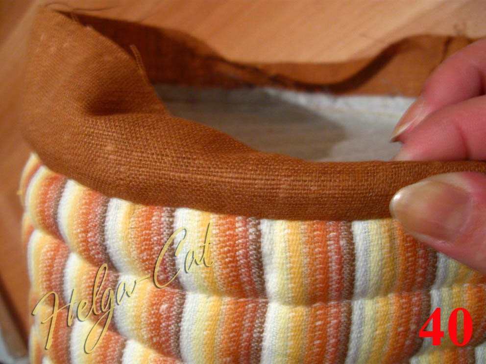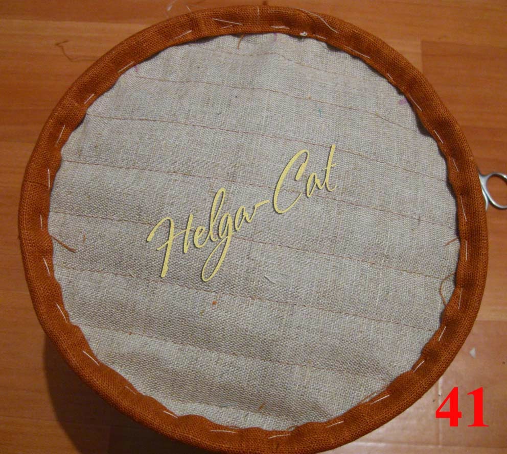 39. Завернуть полоску внутрь, формируя аккуратный кант шириной ок. 1 см или чуть больше. В общем, все излишки полоски уходят внутрь, их толщина и даст определённую жёсткость основанию конструкции.