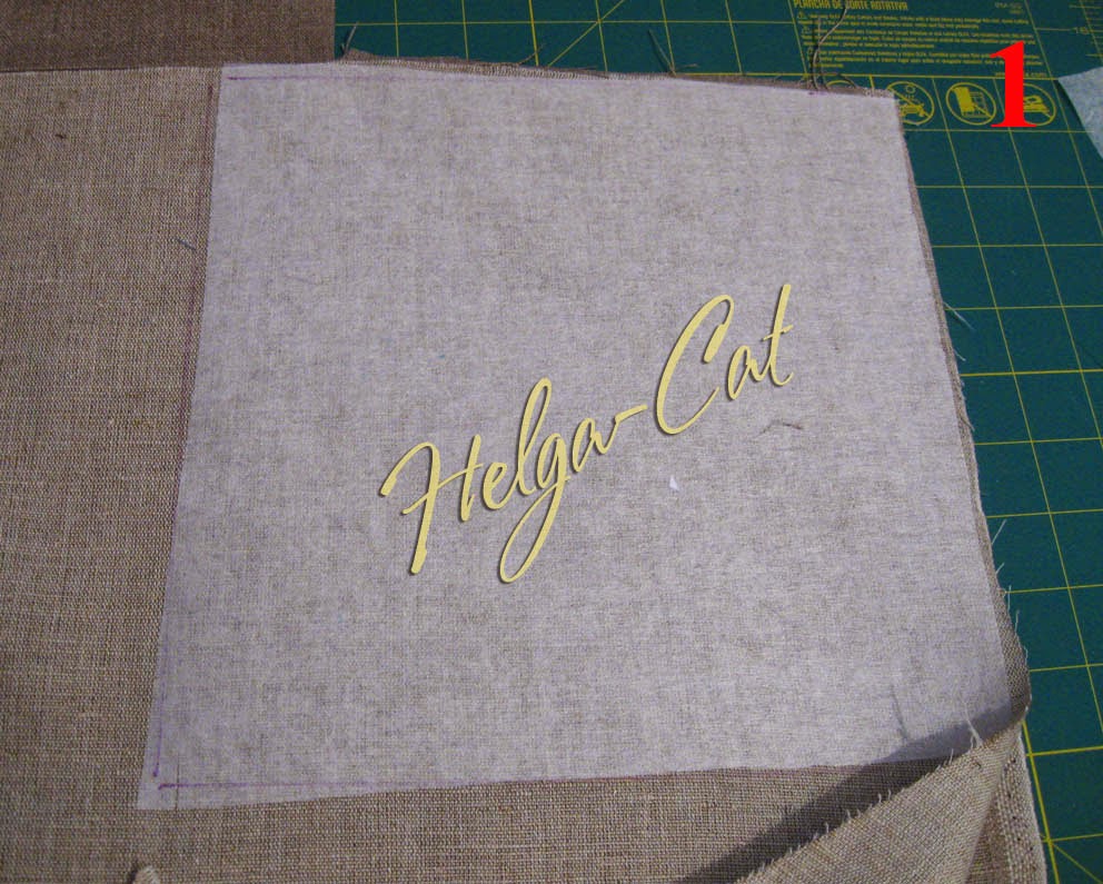 1. Вырезать из флизелина квадрат 23х23 см и проклеить им ткань для нижнего донышка, можно – прямо на большом отрезе, приложив флизелин к одному из углов. Вырезать этот квадрат по контуру флизелина и второй такого же размера – непроклеенный, для внутреннего донышка. Я просто положила одну ткань на другую, выровняла и обрезала дисковым ножом по краю – получились две одинаковые заготовки.