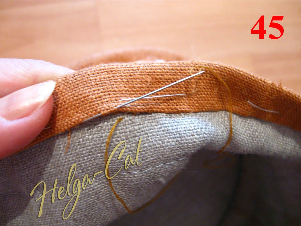 25. Подвернуть свободный край отделки внутрь и приметать на живую нитку. Получится окантовка ок. 1 см шириной.