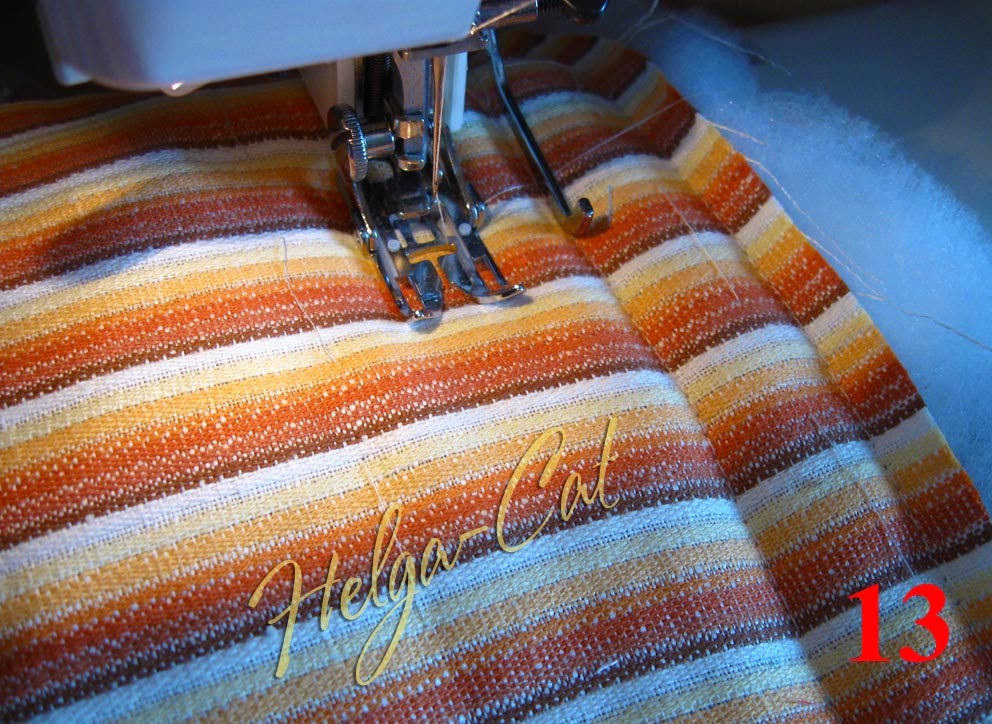 14. У кого машинка со съёмной деталью, дающей возможность получить маленький столик, тому хорошо. )))) Кольцо легко строчить, обернув вокруг этого столика. У кого машинка не даёт такой возможности, выверните кольцо внутрь лицевой тканью и строчите с её стороны – так будет проще подобраться к месту, где надо прокладывать строчку.