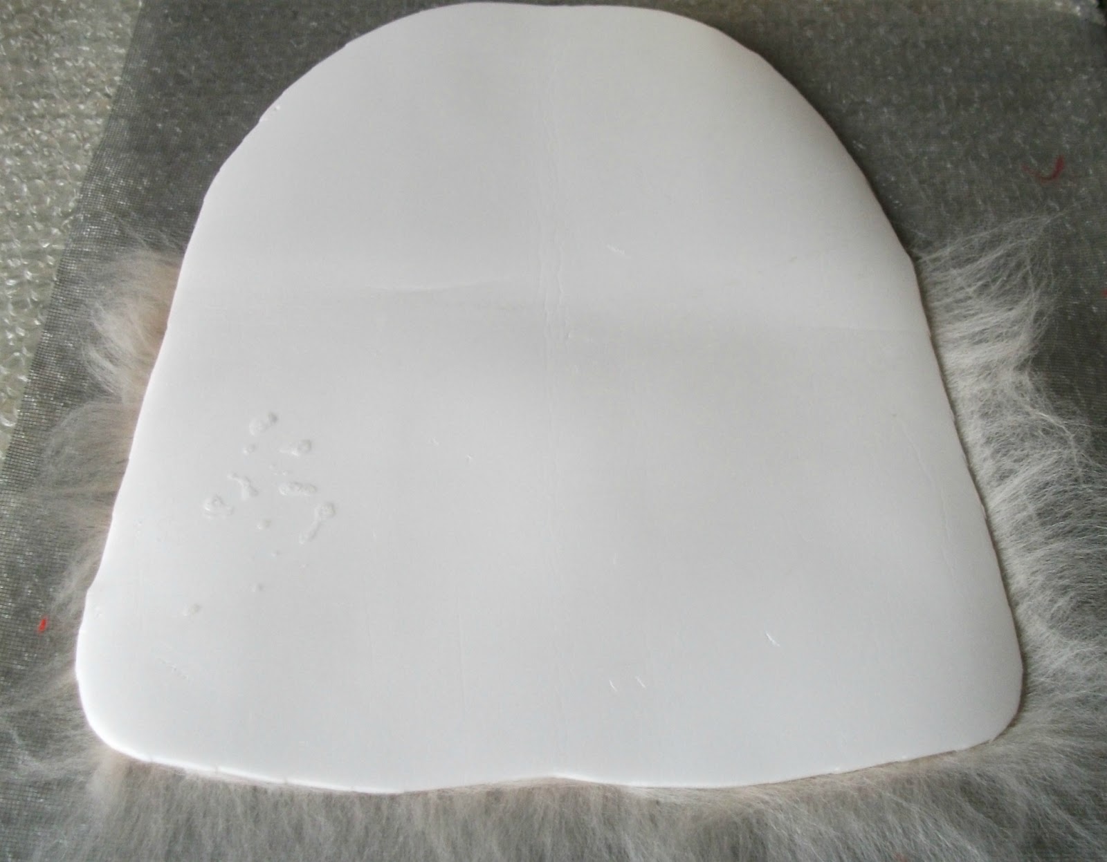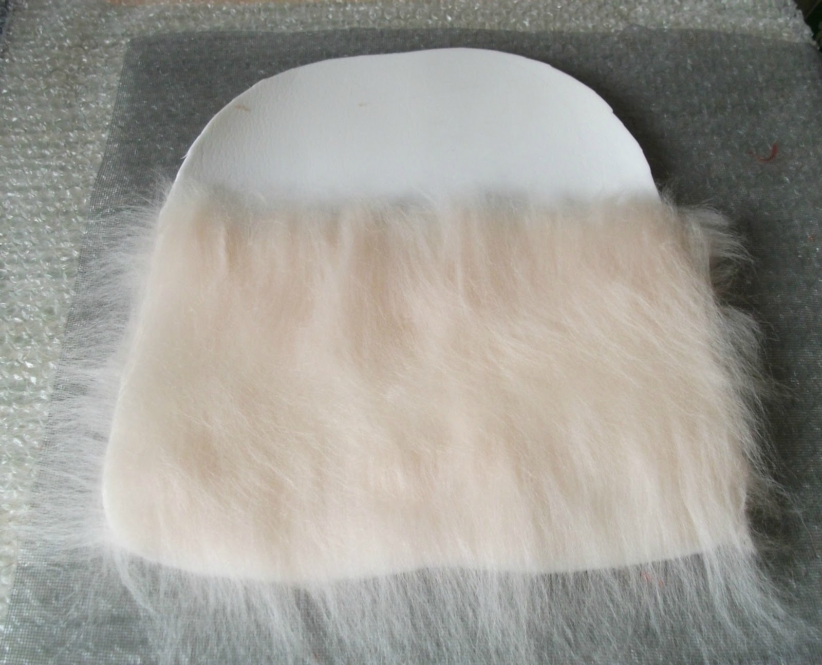 переворациваем на другую сторону, подворачиваем кончики шерсти на шаблон и снова раскладка на 2 слоя шерсти.
