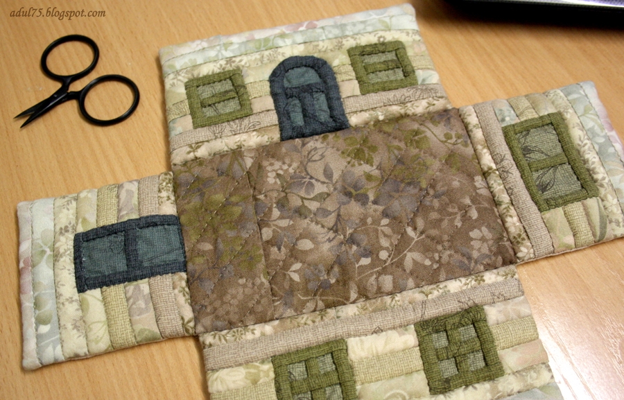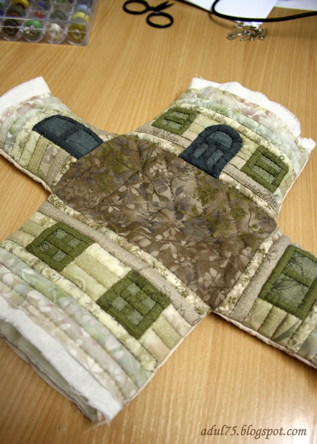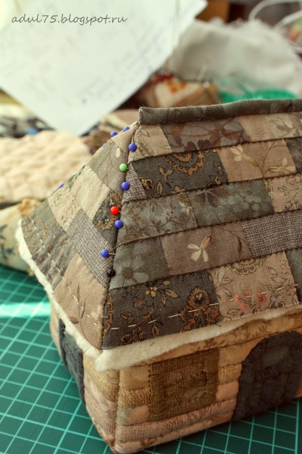 Не торопитесь потом вытаскивать булавочки, я сделала это в САМЫЙ последний момент, когда крыша уже была пришита к домику.