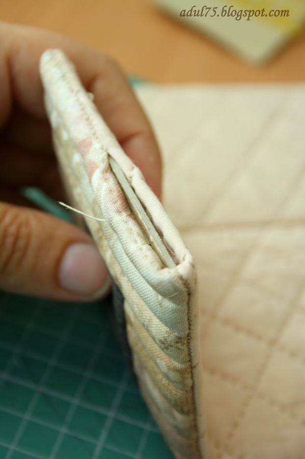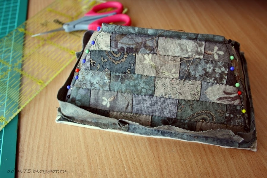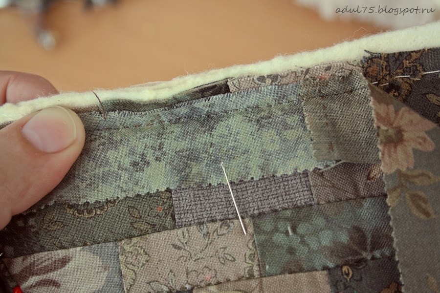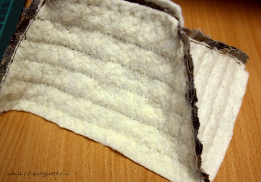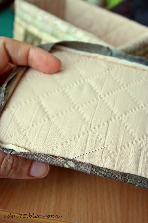 3 - Этот пункт я выполнила на машинке, слишком много слоев для ручного шитья, да еще бути. В общем посчитала что машинный шов будет надежнее))) Нужно прошить только боковые стороны стенок, а верхние оставить открытыми.