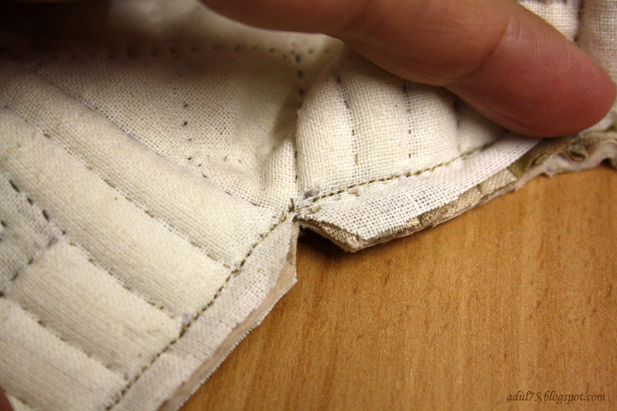 Далее нужно выправить все швы, которые вы прошили на машинке. Пройдитесь пальцами вдоль швов как бы выталкивая их изнутри наружу, при этом каждый раз складывая в нужное положение. Дальше я отпарила швы утюгом со стороны подклада. Но можно этого и не делать.