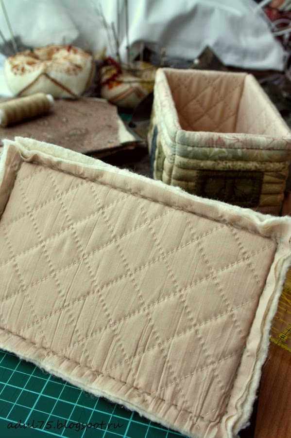 Потому что теперь вам надо простегать насквозь слои ткани по периметру дна, чтобы картонка оказалась зашитой внутри.