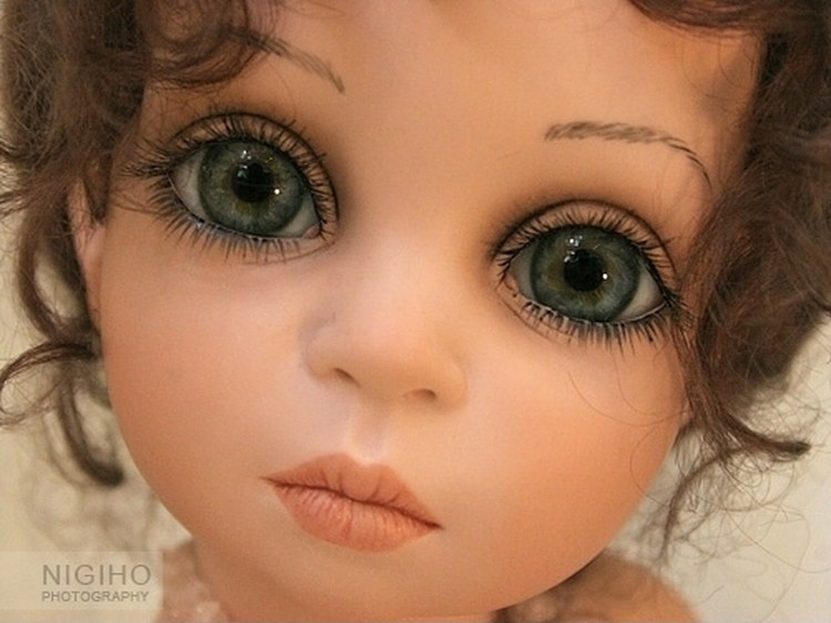 Каждая кукла имеет свою прическу, которая легко трансформируется в любую другую, или просто в распущенные волосы. Эту процедуру облегчает так же высокое качество натуральных волос, используемых автором. Ни фотограф, ни просто любитель кукол не в состоянии пройти мимо этих сияющих, удивительной красоты, выразительных глаз, просто-таки неземные глаза в окружении длинных, шикарных ресниц. Кажется, что в их глазах отражается не только кукольная душа, но душа каждого, кто в них заглянет.Они полны нежности и чувственности, дополняя в целом образ задумчивых красавиц. И это не удивительно. Сама Сью Линг Ванг подтверждает, что глаза действительно не простые. Для каждой куклы художница разрабатывает отдельный эскиз и заказывает у художника-стекольщика, который выдувает их ручным способом из специального стекла высокого качества.