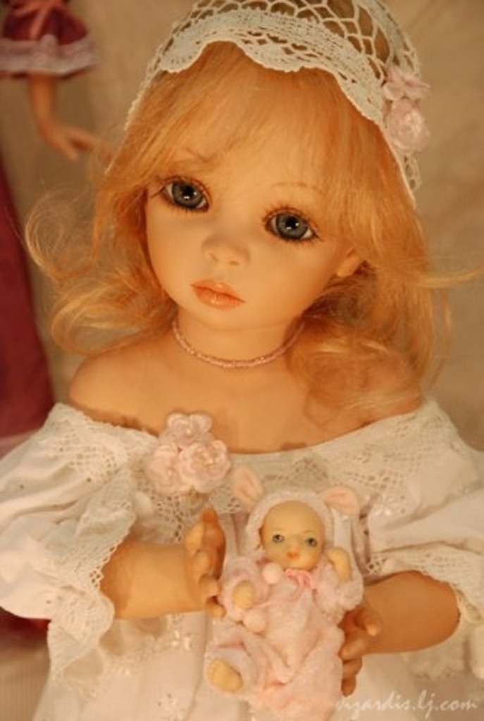 Автор этих прекрасных созданий - Сью Линг Ванг из Германии. Немецкая кукольница работает исключительно с фарфором. Куклы делаются либо целиком из фарфора, либо фарфоровые ручки, ножки и головка крепятся к плотно набитому телу.