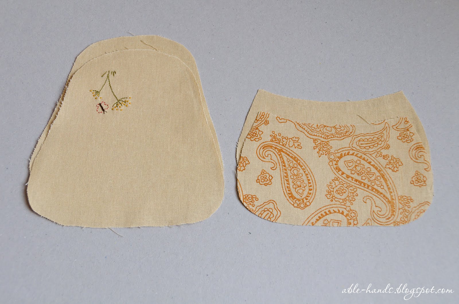 1. Выкраиваем детали косметички: две с клапаном и две без клапана. Я использовала выкройку с сайта sewlover.com. Если нужно, детали уплотняем (флизелином, дублерином или стегаем с синтепоном) и украшаем.