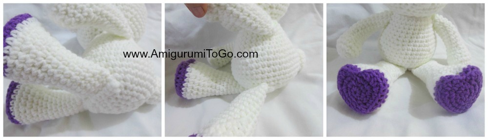 Набить ногу. Можно сложить ногу и провязать вдоль края сбн, оставить нить для пришивания.