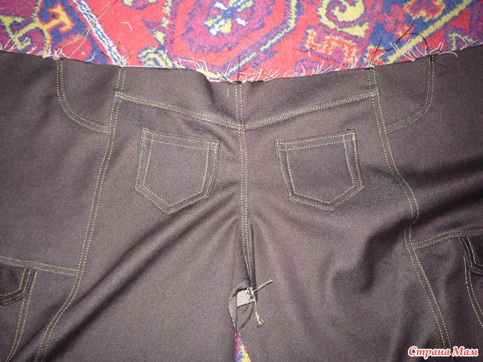 13. Подшить низ брюк по бокам, втачивая шлевки.