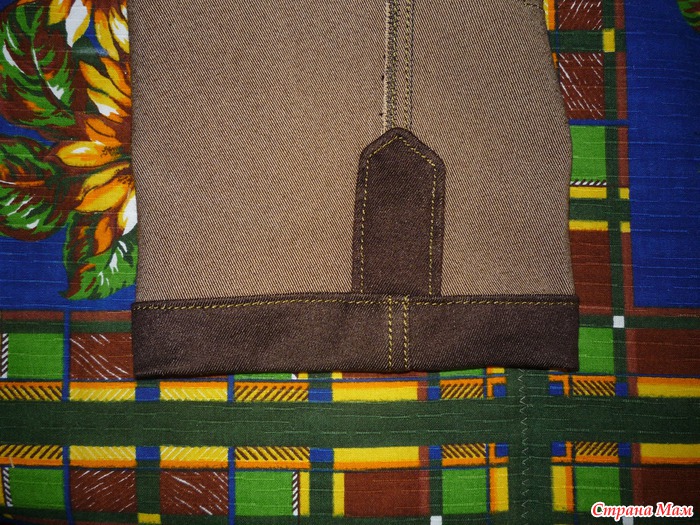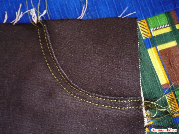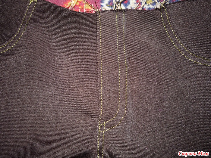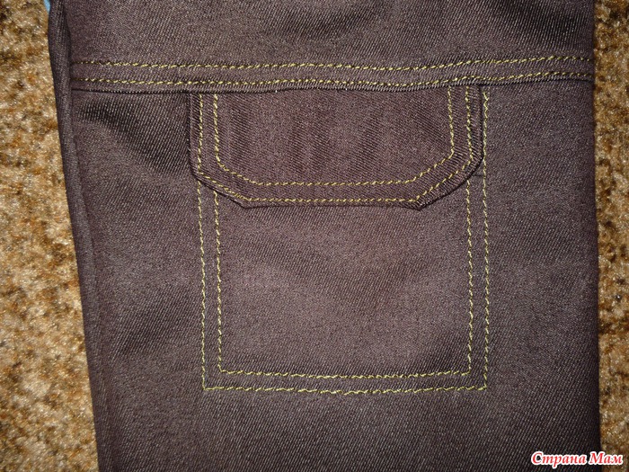 3. На нижней части передней половины брюк оформляем имитацию кармана, прокладывая двойную строчку.
