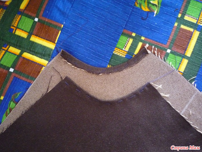 5. Кокетку стачиваем с задней половинкой. Прокладываем двойную строчку.