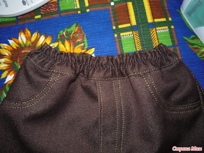 11. Притачать пояс, вставить резинку. Зафиксировать резинку зигзагообразной строчкой.